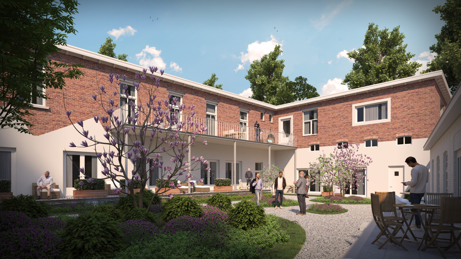 Aan de zuidrand van het actieve dorp Goirle – dichtbij Tilburg –zijn in oktober 2025 zestien unieke appartementen opgeleverd in een monumentaal industrieel pand op het Land van Anna. Alle appartementen hebben een eigen buiten – balkon, terras of loggia – en delen een royale binnentuin. Daarnaast beschikt onze woongemeenschap over een mooie ontmoetingsruimte, een bescheiden logeerkamer en een praktische fietsenstalling.